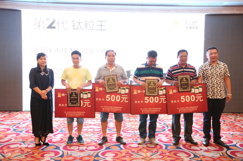 2017年7月28日,“统一第2代钛粒王产品发布会”在广东佛山隆重举办。凭借在产品品质、支持政策上的领先以及精准独到的市场趋势分析,统一获得了172家修理厂客户的一致赞誉,并现场创下143万订单!