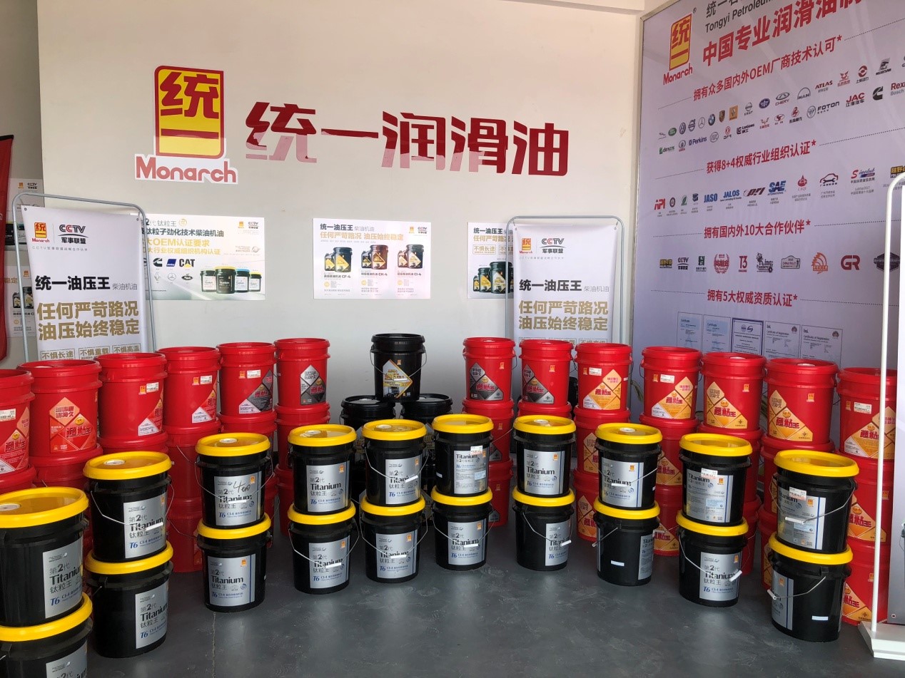 统一润滑油形象店为公路港内卡客车提供换油服务展示架