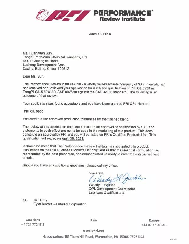 成为目前国产润滑油领域拥有此项认证的两大品牌之一。