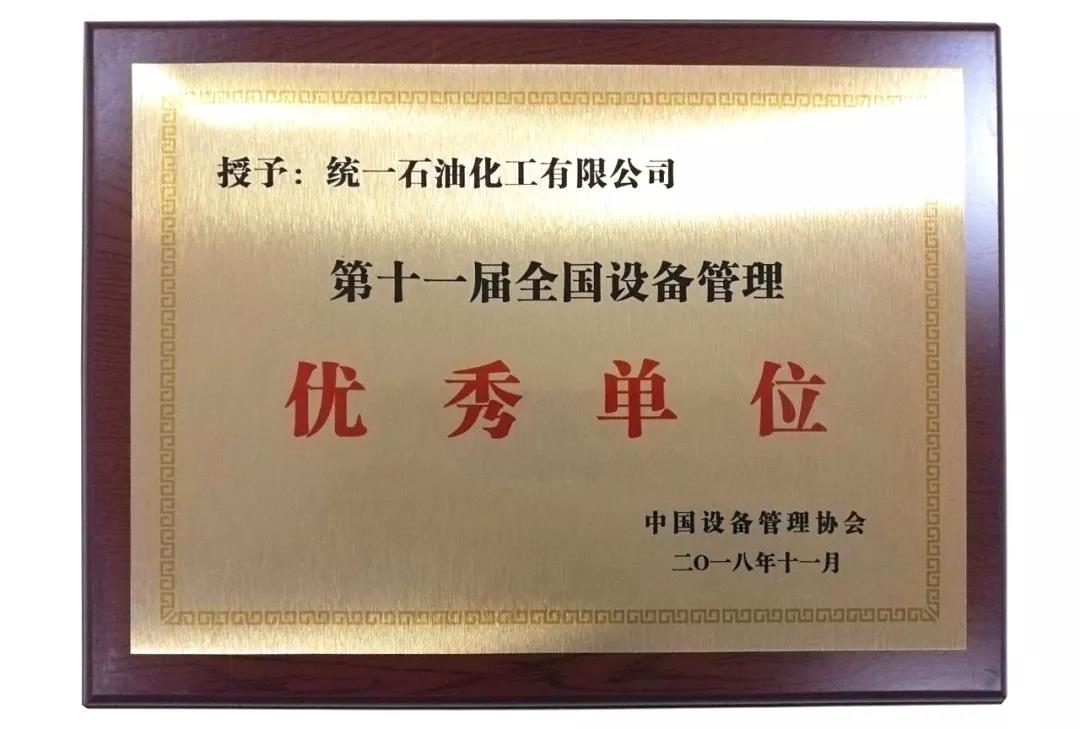 统一石化荣获第十一届全国设备管理单位优秀称号。