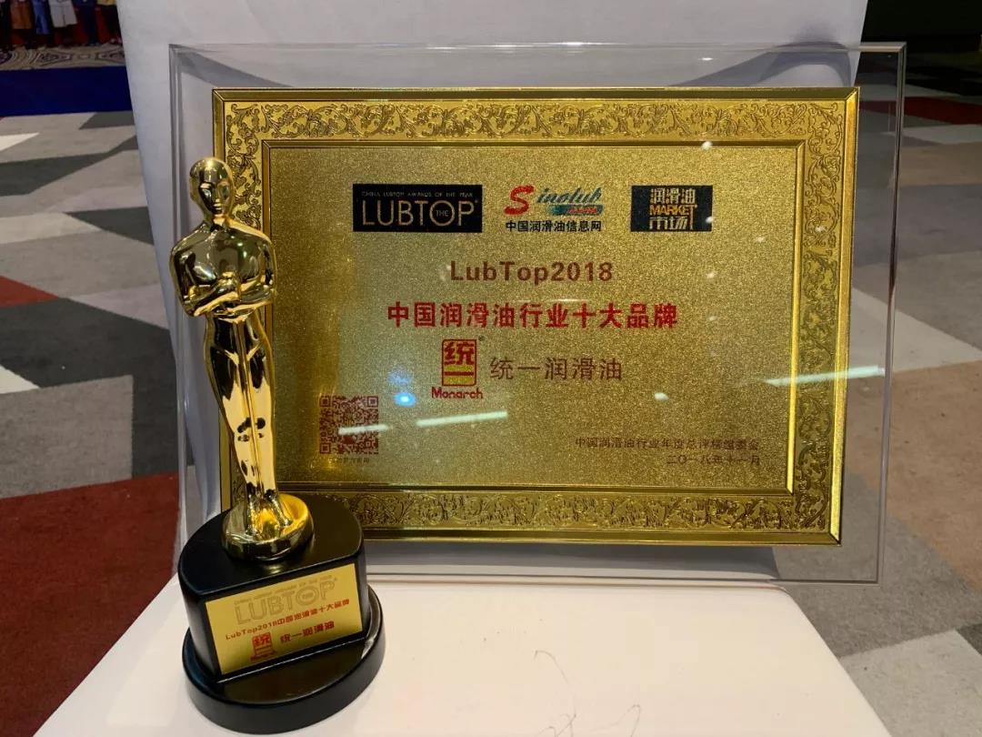 统一润滑油连续第三年斩获“2018年度润滑油行业十大品牌”殊荣。