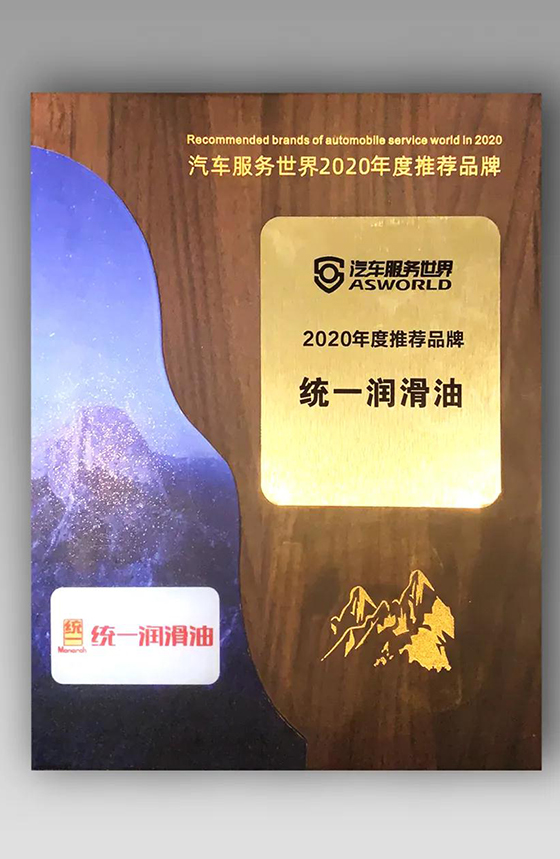 与此同时,统一在产品与服务上的不懈努力,在会上,统一润滑油荣获“汽车服务世界2020年度推荐品牌”大奖。