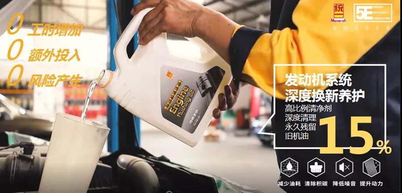 如:发动机清洗项目。该项目可为发动机系统进行深度换新养护,使用15%高比例清净剂,深度清理永久残留旧机油。同时,这一项目由统一负责全套培训,单次换油可增加100元产值,同时0工时增加、0额外投入、0风险产生。