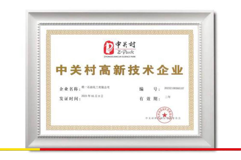 “中关村高新技术企业”认证,是国家为支持和鼓励高新技术企业大力发展,积极开拓创新而专门设立的资质认证,其申请条件极为严格。此前,统一润滑油已经于2022年获得“国家高新技术企业证书”,该证书是统一低碳技术获得行业认可的证明,是由国家科技、财政、税务、环保、质量/安监、审计