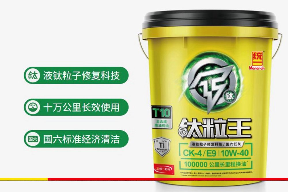 如果说发动机是车辆的“心脏”,那么机油则是让这颗“心脏”持久焕发澎湃动力的血液,因此,我们在选择发动机润滑油的时候一定要选择更好的。针对我国商用车发动机日常磨损及油耗升高等问题,统一润滑油研发团队研制出了统一钛粒王T10全合成柴油机油,它有着出色的流动性和稳定性,形成的