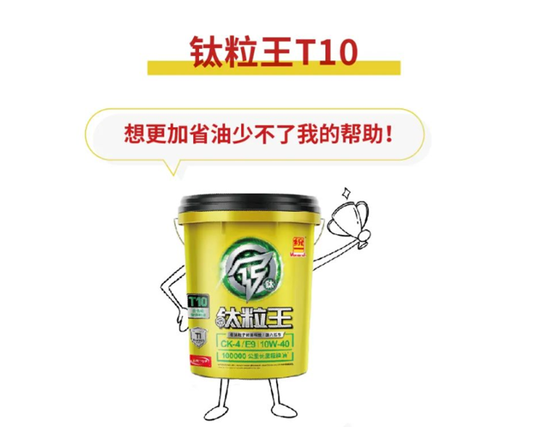 想要省钱,就要省油,那就少不了统一润滑油钛粒王T10的帮助,钛粒王T10能对抗国六发动机大幅提升大的内部压力和温度,确保发动机的性能稳定。钛粒王T10还拥有先进的液钛粒子修复科技,可达到活塞顶部积碳为0,避免进气量不足,喷油量不均的问题。与全效添加剂组合使用的情况下,燃油经济性提升2-5%。