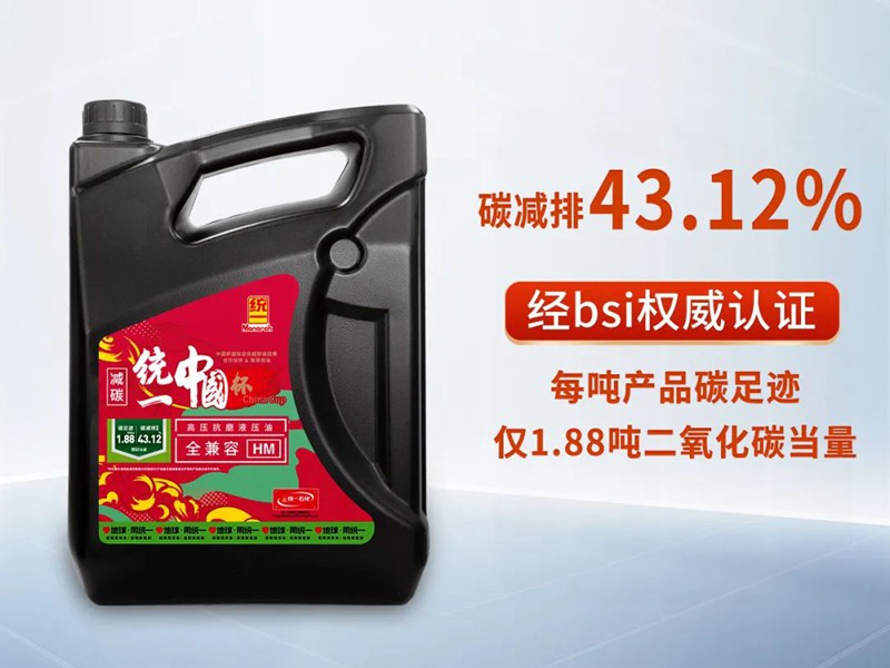 统一中国杯3.5L全兼容HM液压油除了有优质的油品性能外,还是一款品质可靠的减碳液压油,且已经通过英国标准协会bsi权威碳足迹认证。其每吨液压油的碳足迹仅1.88吨二氧化碳当量,碳减排强度为43.12%,为重卡和工程机械用户实现减碳减排提供了保证。