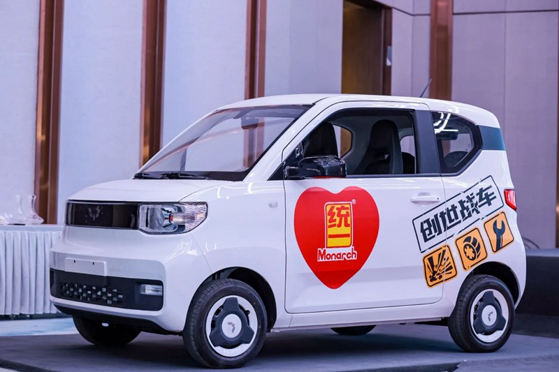 众所周知,统一与五菱合作关系深厚,多年来,一直都是由统一为五菱在柳州的工厂提供产品配套服务,并为企业新能源汽车提供配套的油液解决方案。在今年的1218年会上,统一与创世战车、五菱联手,共同推出定制款五菱宏光MINI EV 2022款新能源汽车。以火爆全球的“创世战车”打造出潮流炫酷的look,并以好停、好玩、好开、好用的性能优势,成为广大车主出行的座驾。这款极具个性化的五菱战车被作为12月18日统一润滑者年会的抽奖礼品,在抽奖现场共送出100辆,可以说只要是当晚参加抽奖的经销商伙伴,都有机会将这款车开回家。