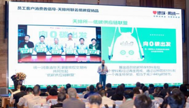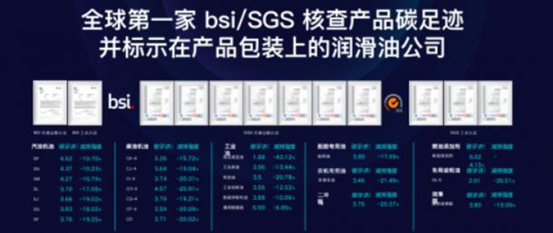 在低碳产品解决方案方面,统一润滑油已打造出可覆盖全领域的低碳润滑解决方案,低碳产品可广泛应用到工业及交通运输行业。统一润滑油的低碳产品均通过了权威机构bsi和SGS的碳足迹认证,每款产品的外包装均印有可视化的产品碳足迹数据和减碳强度标识。