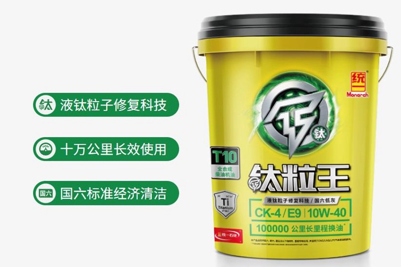 针对我国商用车发动机日常磨损及油耗升高等问题,统一润滑油研发团队研制出了统一钛粒王T10全合成柴油机油,它有着出色的流动性和稳定性,形成的油膜难以被破坏,可有效降低发动机的故障率,延长使用寿命。