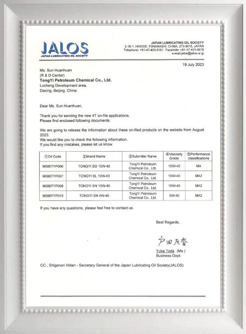 以最新推出的统一途锐系列摩托车机油为例,采用全合成SN级别配方,除了较好的抗磨损、抗氧化和清洁性能外,还能兼顾发动机的高低温适应性,满足消费者对摩托车油品多元化发展的需求。值得一提的是,统一润滑油的产品配方还通过了日本JALOS的认证,获得行业和消费者的高度认可。