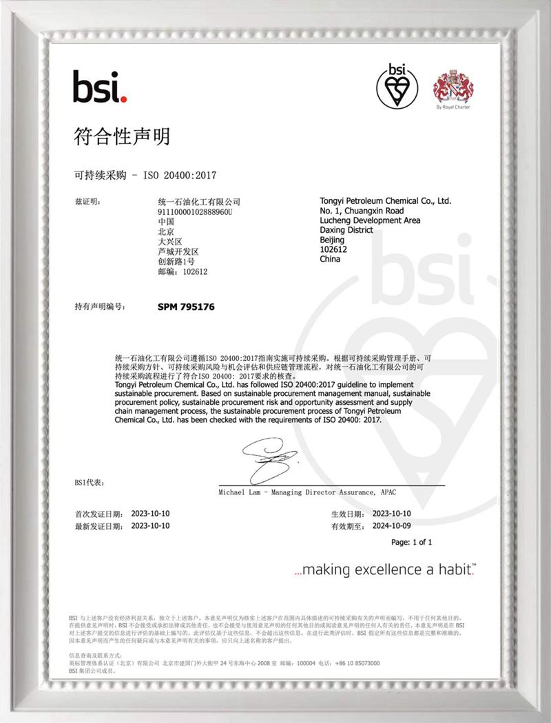纵观全局来看,能够顺利取得ISO20400是统一石化对传统燃油时代供应链做出的一次全新变革,同时此举也意味着新能源时代的到来。