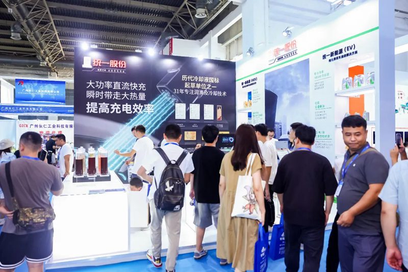 作为历代冷却液国标起草单位的成员,统一在此次展会上主要展示了新能源纯电(EV)油液解决方案和混合动力(HEV)油液两类解决方案,充分展现了其在新能源汽车油液领域的专业实力。现场,新能源汽车冷却液新国标首发产品——统一纯电动低电导率NE100冷却液、适合混合动力汽车双制动系统的全兼容制动液——DOT4+(HZY4)以及新能源汽车充电桩热管理液,成为本届展会的焦点。