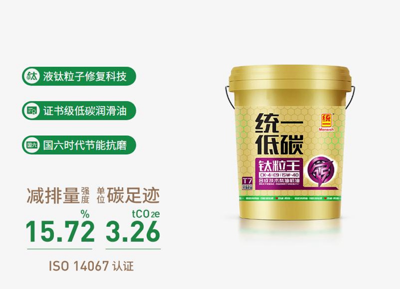 统一钛粒王T7 CK-4低碳柴机油是知名低碳润滑品牌——统一石化为满足严格的国六排放标准而推出的一款产品,具有低粘度、低灰分、低油耗、低碳排放的四大特性。其实,早在我国正式实施国六排放法规之前,统一就开始依托统一T-lab低碳润滑实验室着手布局低碳润滑产品领域。所推出的低碳润滑解决方案覆盖了交通运输、乘用车、电力、新能源、工业、制造业等各大行业领域。