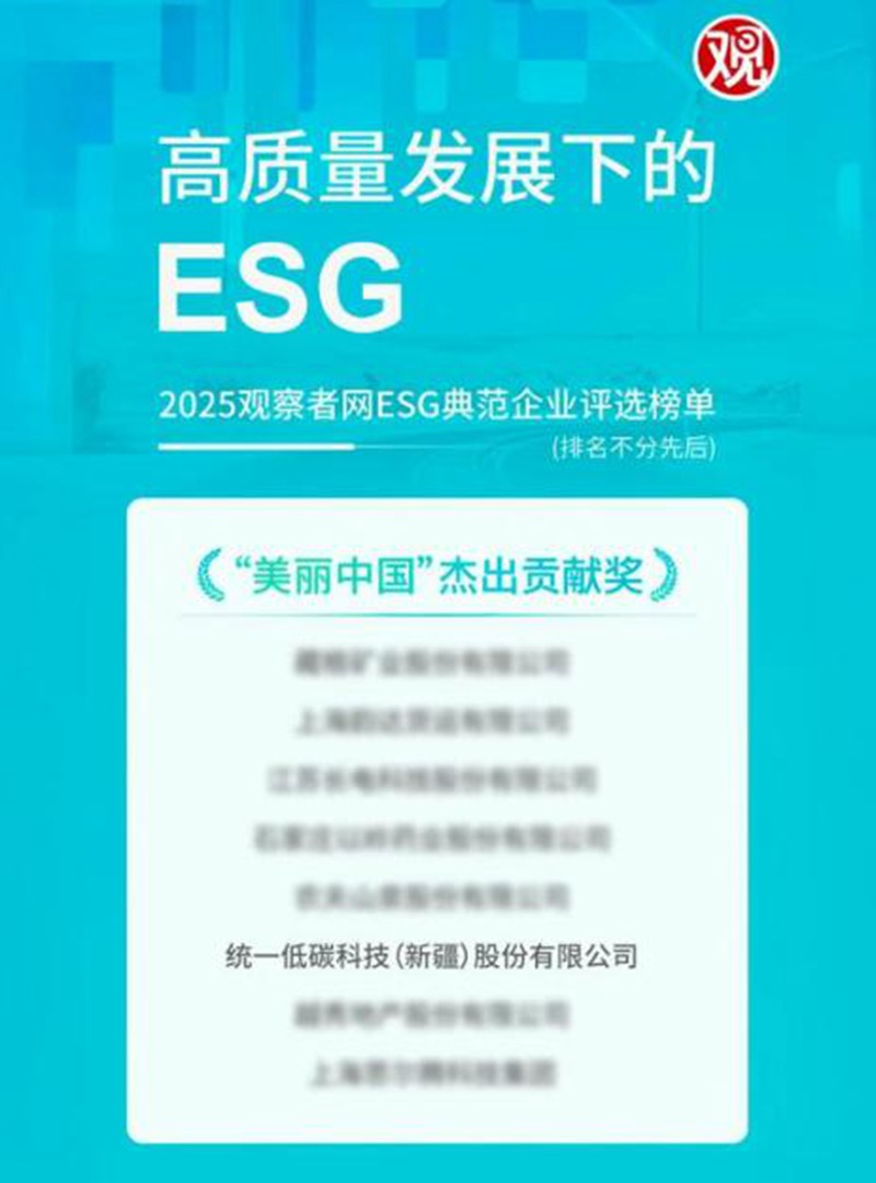 在当今追求经济高质量发展的背景下,企业如何平衡增长与环保已成为社会关注的焦点。统一低碳科技(新疆)股份有限公司以实际行动交出了一份优秀的答卷。近日,在观察者网2025年度ESG典范企业评选中,该公司凭借其在低碳领域的持续创新和卓越贡献,荣获“美丽中国”最佳贡献奖。这一荣誉不仅是对企业环保成果的高度认可,更体现出中国产业向绿色化、可持续化加速转型的大趋势。