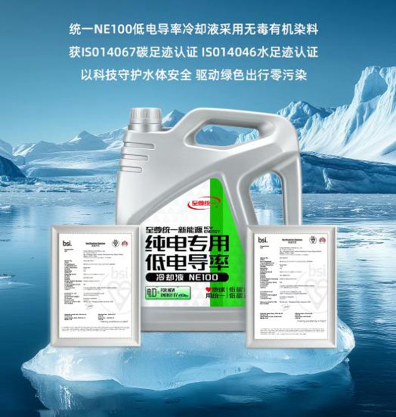 统一NE100低电导率冷却液,凝聚着统一对生态保护的极致追求。这款革命性产品采用进口有机型配方与无毒植物染色剂,彻底杜绝重金属污染风险。经过BSI英国标准协会的严苛审核,NE100成为国内首批同时斩获ISO14067碳足迹与ISO14046水足迹双认证的冷却液产品,树立了行业新标杆。