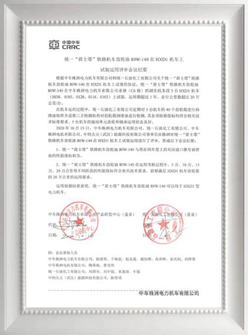 统一石化自主研发的铁路机车齿轮油80W-140经过中国中车严格测试后正式投入使用已超一周年。这款专为铁路机车设计的齿轮油在重载工况下展现出卓越性能,成功解决了铁路运输中的多项技术难题。