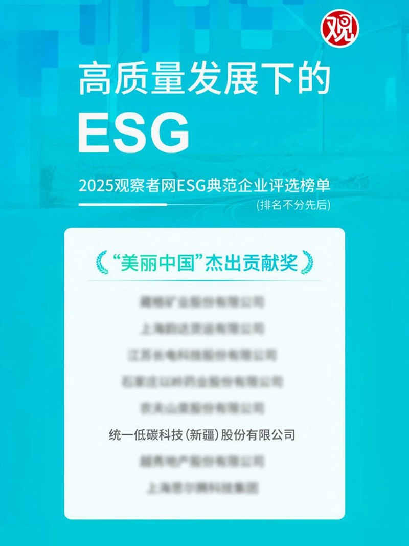 2025年,中国ESG发展迈入高质量推进新阶段,统一股份凭借亮眼的绿色实践持续领跑行业。近日,其核心板块统一低碳科技(新疆)股份有限公司在观察者网2025年度ESG典范企业评选中,凭借在土壤、水、空气保护领域的突出贡献,斩获“美丽中国”最佳贡献奖,这一荣誉既是对企业六年低碳坚守的肯定,更是对其推动生态保护与产业发展深度融合的高度认可。