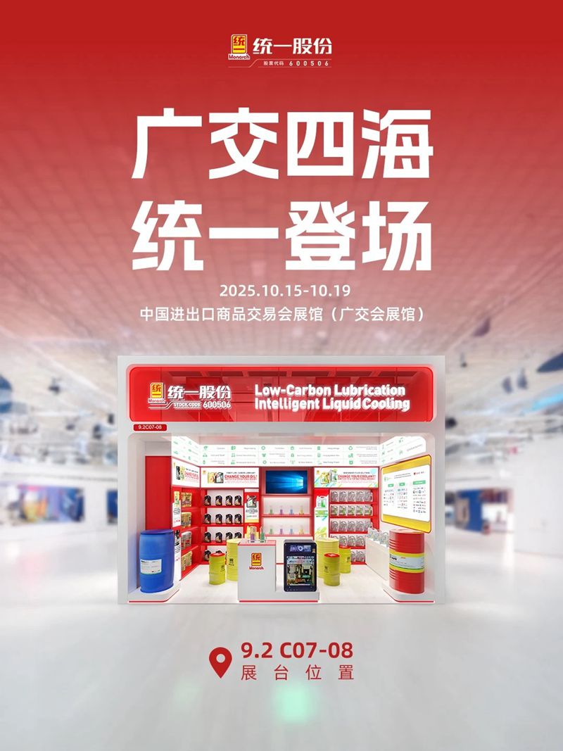 📍广州,第138届广交会,统一石化与您不见不散!我们跨越山海,携领先的低碳润滑和液冷解决方案而来,期待与全球伙伴面对面,为您的业务注入高效、低碳的澎湃能量。🔹 聚焦现场:· 液冷硬核新品首发,展现科技实力· 前沿低碳润滑技术分享,驱动可持续发展· 深度合作机遇,助力全球业务拓展🔹 我们的使命:以创新“芯”动力,携手全球伙伴,共探绿色未来,共拓增长新路径。诚邀您亲临统一石化展位,交流行业趋势,洽谈合作,携手书写全球市场新篇章!#广交会 #统一石化 #企业出海 #全球伙伴 #统一低碳润滑油 #统一液冷 #润滑创新