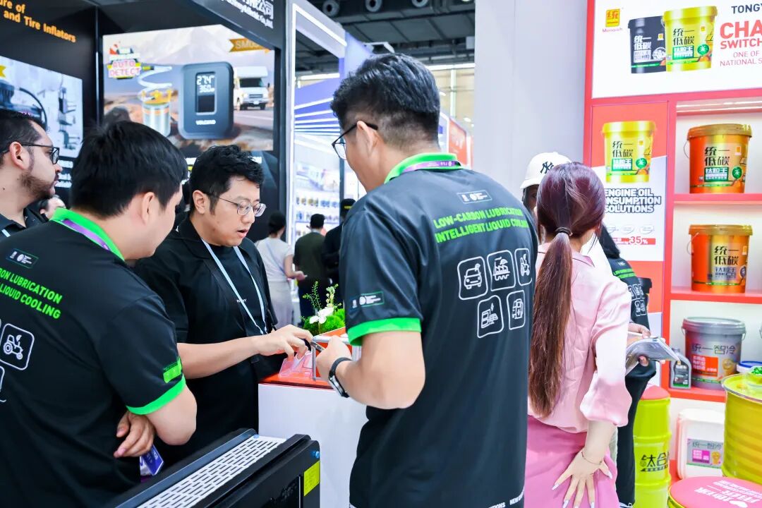 围绕"绿色、高效、适配"三大核心,统一展示了覆盖新能源、交通、工业等多领域的全谱系低碳油液产品与解决方案。展台现场,已通过防火测试认证NE100低电导率冷却液、交通养护领域的钛合能9系PLUS(长换油周期)和低碳钛合能ECO(碳足迹降低30%)成为关注度最高的产品。