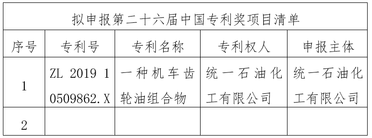 根据《国家知识产权局关于评选第二十六届中国专利奖的通知》要求,我单位经民主推荐、集体研究审定,拟同意以下专利项目和专利发明人(设计人)申报第二十六届中国专利奖评选,现予以公示。公示时间自2025年11月13日至11月19日。公示期间如对拟申报项目或个人有异议,请向我单位书面反映,凡以单位名义反映情况的要加盖单位公章,以个人名义反映情况的需具实名并附联系方式。