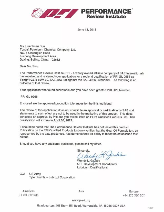 PRI 质量评审协会――由美国汽车工程师学会( SAE )在1990年创立。其使命是提供国际化、公正、独立的制造流程规范及产品的评审和认证服务,旨在持续改进,增加价值,降低总成本。PRI更是从1998年起,负责美军润滑油的认证标准和认证产品检测工作,这也从侧面表现出其标准的严格与测试的严谨。