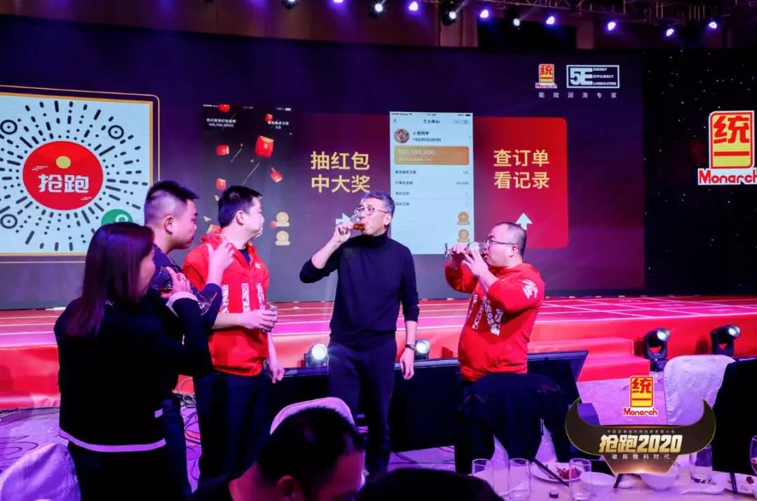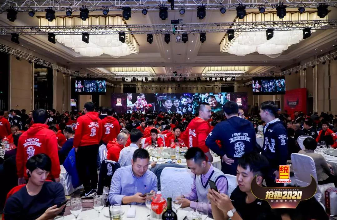 晚宴期间,统一CEO李嘉先生致了祝酒词,统一们共同举杯欢庆,除此之外,,李总还带了特殊环节,全员吃蒜,1400位经销商家人一起吃蒜,2020统一人凡事都说了算。
