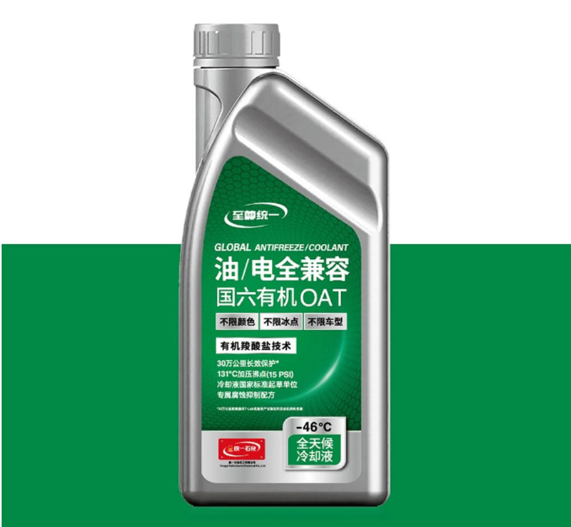 其中,至尊统一全兼容国六冷却液具有沸点高、冰点低的技术优势,冰点达到-45℃,可以适应我国各个地区,南北通用。具有不限冰点、沸点和颜色的技术优势,能兼容其他品牌、颜色、冰点的冷却液产品混合使用。