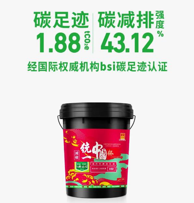 而统一中国杯低碳液压油HM则是经国际权威机构bsi碳足迹认证,其产品碳足迹与行业同类商品相比要高,经bsi认证其碳减排强度达到43.12%。