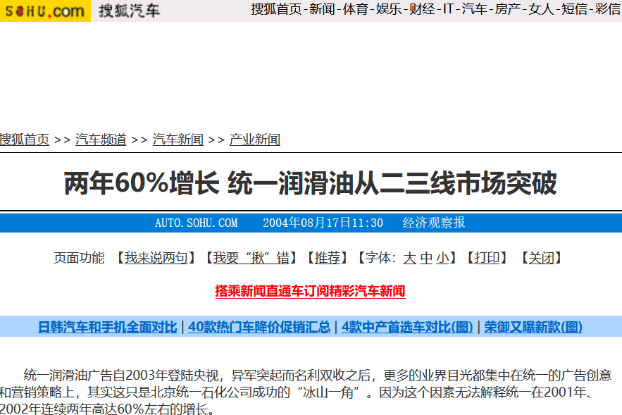 标题:两年60%增长 统一润滑油从二三线市场突破