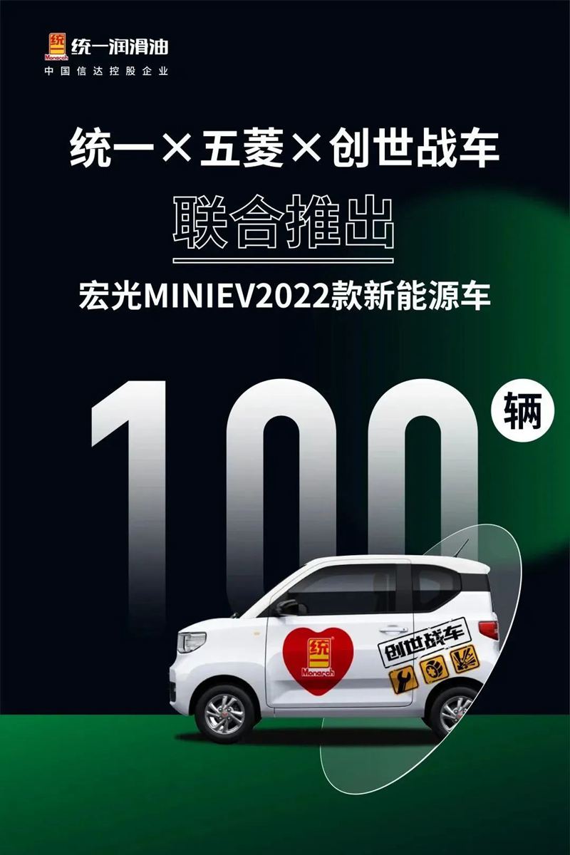 伴随本年度1218大会来临之际,统一润滑油联合创世战车、五菱,为经销商家人们带来了100辆联名款新能源车作为奖品,下单即有机会赢取。好开、好停、好玩、好用,到点就来抱走吧!