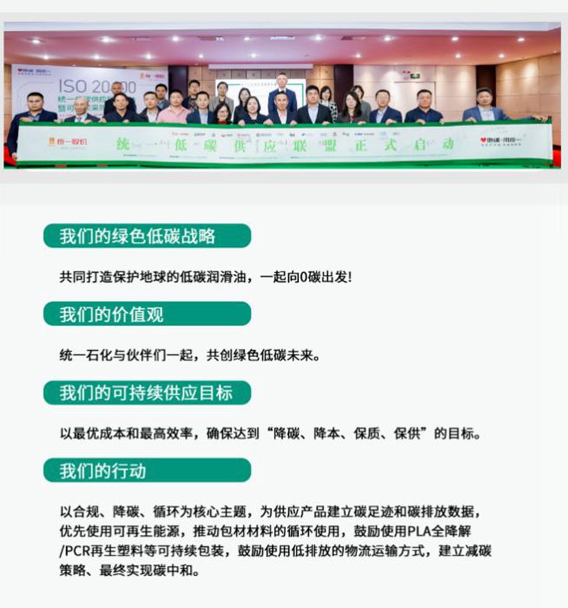 伴随着统一绿色低碳供应联盟的成立,统一石化供应链体系内去塑、节能降耗工作已经呈现出雁阵式创新发展体系。该联盟倡导优先采用可再生资源,推动包装材料的循环利用,这也在统一去塑大家庭中达成了共识。