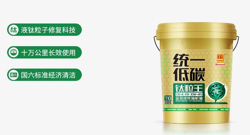 统一润滑油,三十年来始终专注于润滑油养护产品的研发、生产及销售,为了满足国六排放标准的商用车对润滑油的需求,统一推出了钛粒王T10全合成柴油机油,满足API CK-4和ACEA E9双标准认证,还可满足康明斯CES20086、沃尔沃VDS-4.5、马克EOS-4.5、底特律DFS 93K222、MTU Category 2.1、戴姆勒奔驰MB 228.31、雷诺RLD-4、道依茨DQC III-10 LA、MAN 3775等OEM认证要求。