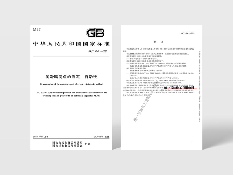 随着制造业高端化、特种设备、新能源领域的不断发展,对高温润滑脂的使用要求也越来越严格。在此背景下润滑油领域也根据市场需求推出了耐高温、复合皂基等高性能润滑脂产品。为能准确评估这些新型产品的耐高温性能,由国家市场监督管理总局牵头,统一润滑油核心参与起草的GB/T 46421-2025《润滑脂滴点的测定 自动法》,已于2025年10月5日正式发布。