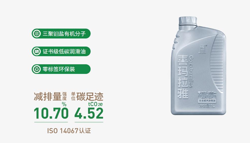 全链低碳闭环,从包装到回收尽显环保初心。在包装环节,统一喜玛拉雅全合成机油采用零标签、零油墨、零粘胶的环保设计,以精细雕刻工艺替代传统印刷,减少资源消耗与环境污染,践行统一“4R1D”低碳方法体系中的减量与可循环理念。在产品生命周期末端,统一通过废油再精炼技术实现资源循环利用,与原油生产相比,该流程可减少34倍原油消耗,降低2-3倍温室气体排放,大幅减轻环境负担。这种从研发、生产、使用到回收的全链条低碳设计,彰显了统一润滑油作为行业低碳领跑者的责任与担当。