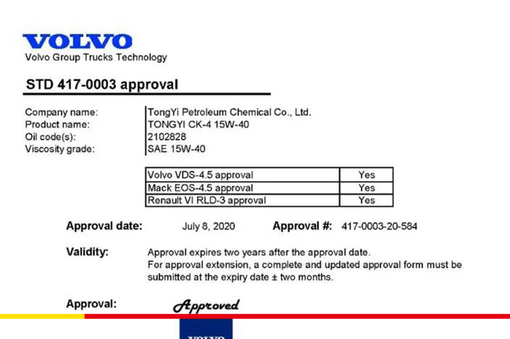 VOLVO权威认证!统一钛粒王T7 CK-4低碳长效无惧国六挑战