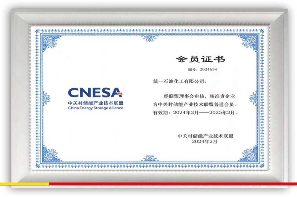 统一石化顺利入选中关村储能产业技术联盟理事会员单位