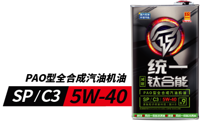 统一钛合能9系5W-40满足API SP美国石油协会认证 同时满足ACEA C3欧洲汽车制造商协会认证