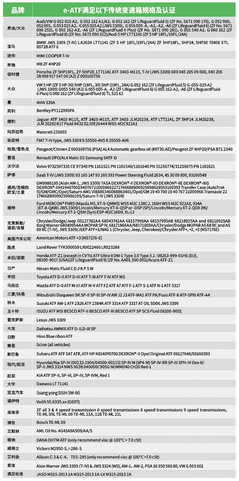 对于采用涡轮增压、缸内直喷技术的发动机有显著的抑制“低速早燃及爆震”的作用,同时可应用于大马力SUV、柴油版汽车,混合动力汽车。
